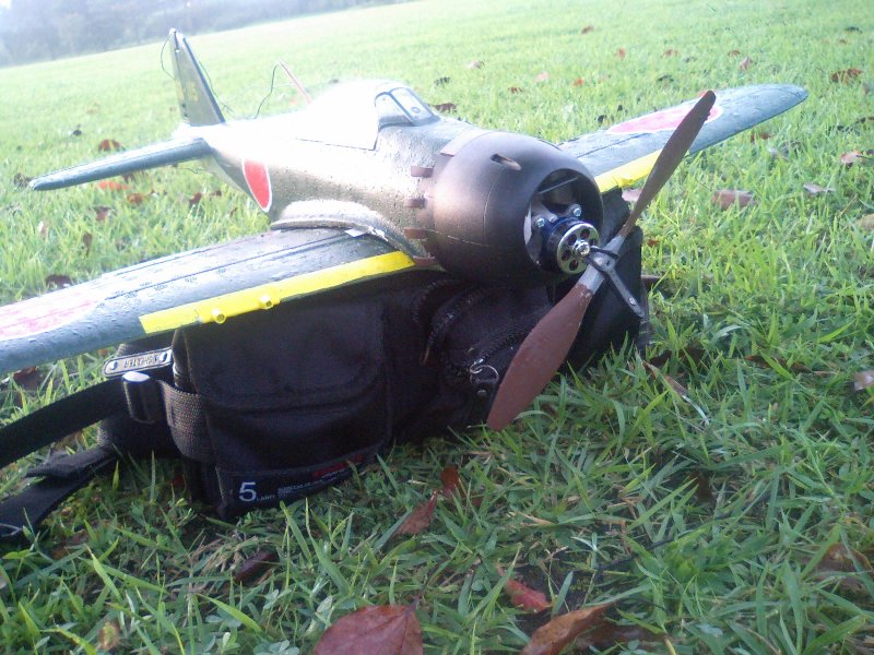 ブラシレスに換装したTAIYO零戦を持って早朝の公園へ行ってきました。