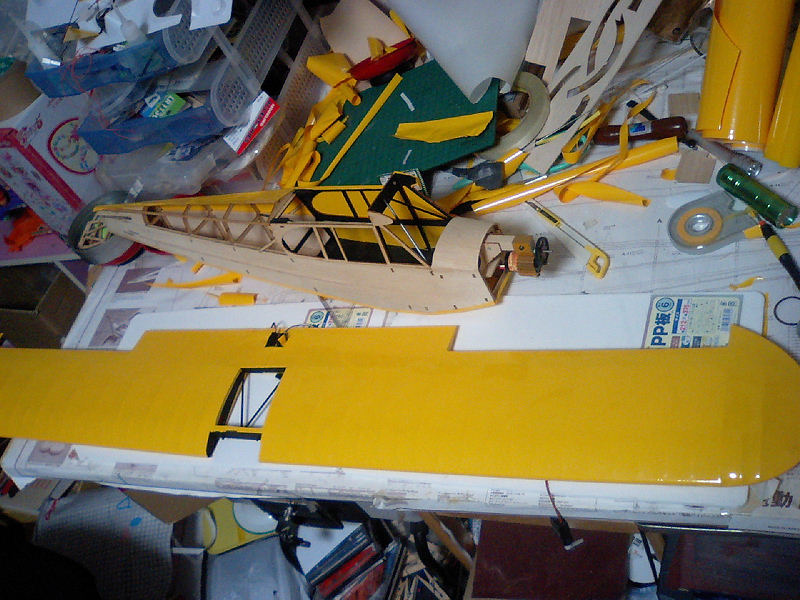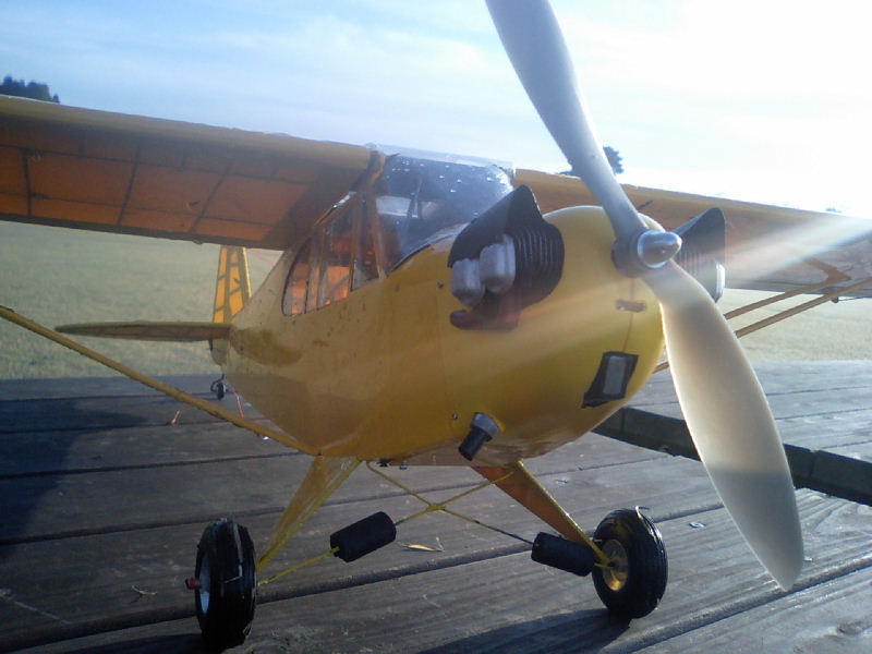 初飛行は何とか無事に終わりましたが滑走離陸するまでに10m程の距離が必要のようです(リポ2セル)。上がってしまえばゆっくりとしたスケールフライトが可能で自分的には気に入ってますがもう少し余裕が欲しいかなと言うところです。